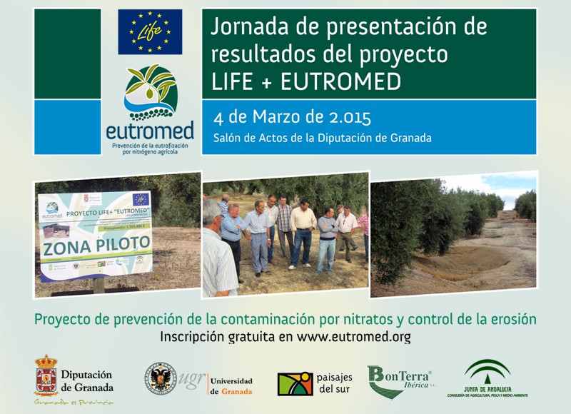 El próximo 4 de Marzo de 2015 se desarrollará en el salón de Actos de la Diputación de Granada la Jornada para la divulgación de los resultados obtenidos con el desarrollo del proyecto Eutromed. D. José Manuel Otero García, Ingeniero Técnico Forestal, va a exponer a las 10.45 h sus experiencias, conclusiones y resultados de reducción del uso … Sigue leyendo Jornada de presentación de resultados del proyecto LIFE + EUTROMED.